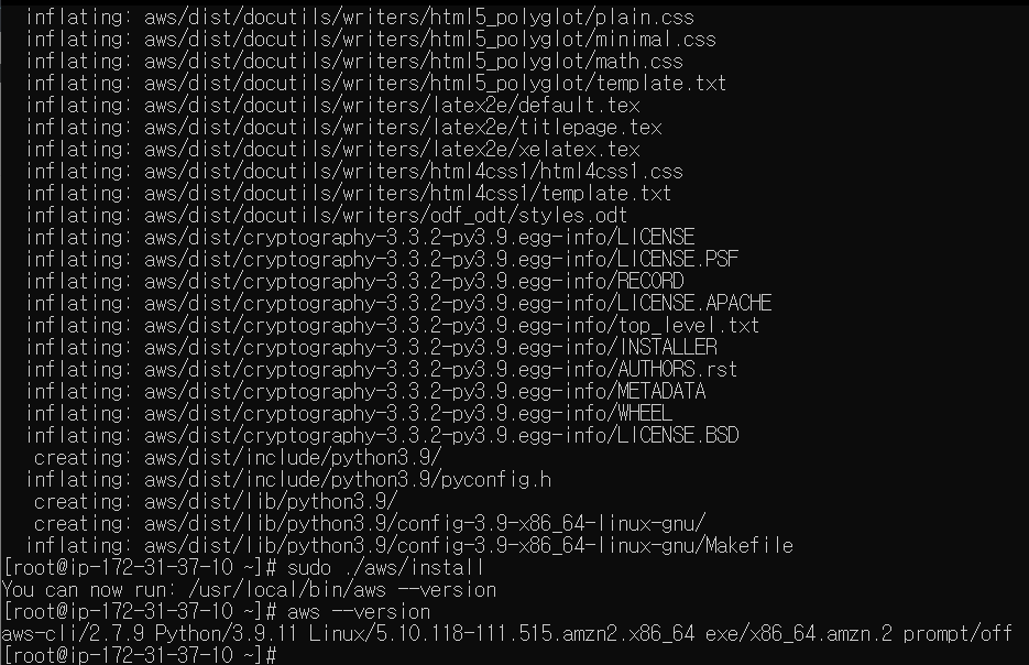 AWS --version 명령어로 설치된 CLI 버전을 확인할 수 있습니다.