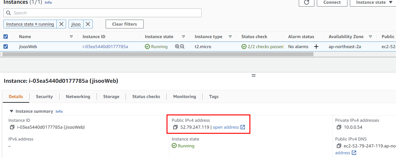 만들어진 EC2에서 Public ip 주소로 들어가보도록 하겠습니다.