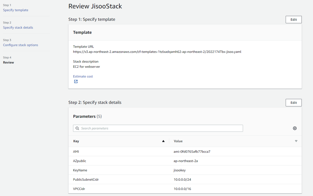 마지막으로 만든 Stack을 리뷰해주고 생성해줍니다.
