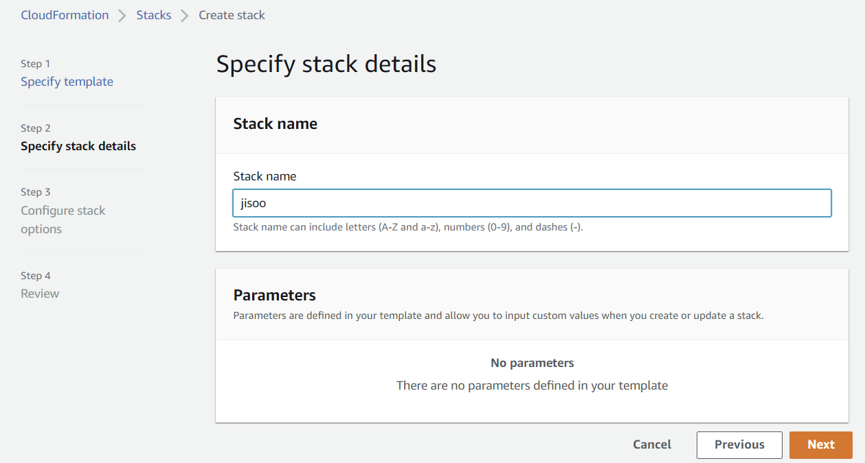 자! 이제 완성된 YAML 파일을 가지고 스택을 생성 해보겠습니다.