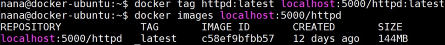 docker tag httpd:latest localhost:5000/httpd:latest