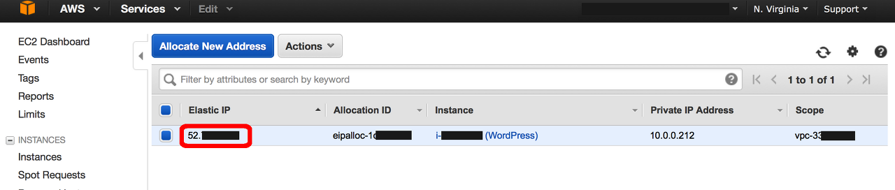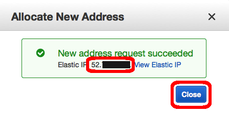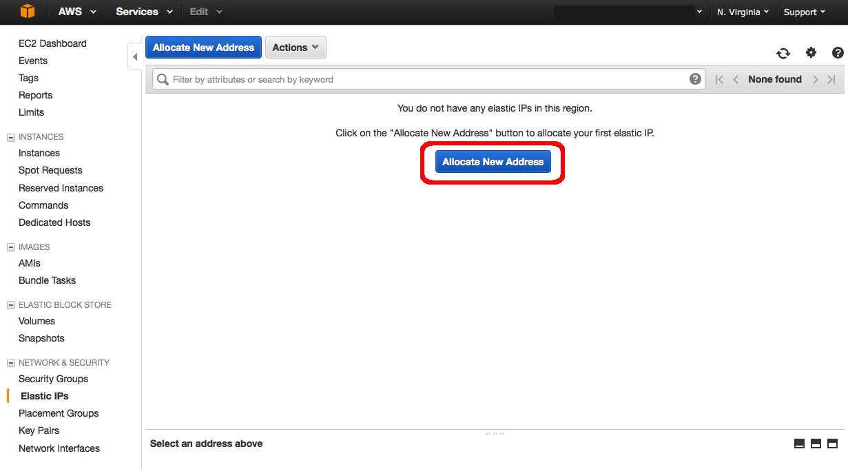 1.새 창에서 EC2 콘솔의 탄력적 IP 부분을 열고, [ Allocate New Address]를 클릭합니다.