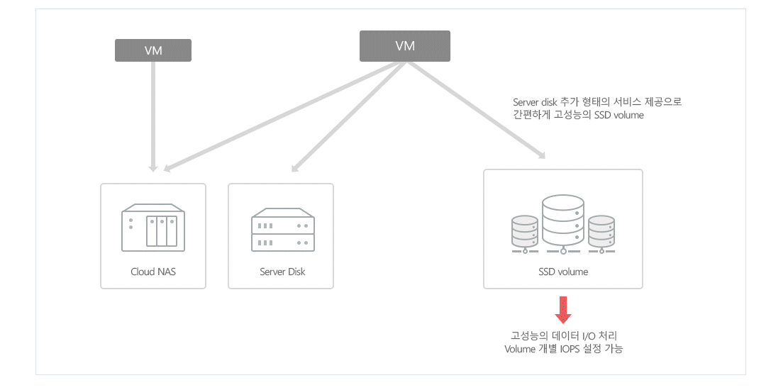 * Volume별 IOPS 설정이 가능한 SSD volume을 제공합니다. (최소 6,000 IOPS 부터, 최대 20,000 IOPS 성능 제공)