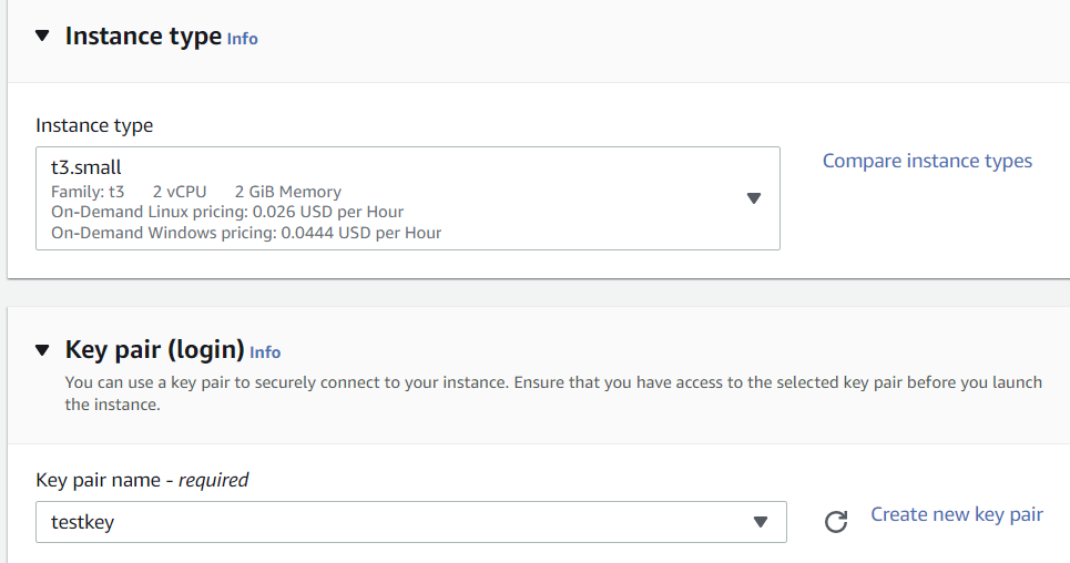 1-2) Instance type 설정 및 ssh 접속을 위한 key pair 생성