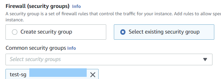 Select existing security group을 클릭하고 새로고침 한 번 누른 후 만들어진 보안그룹을 선택하면 인스턴스 생성을 위한 설정은 끝이 납니다.