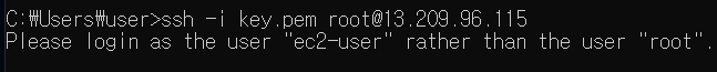 ec2-user로 접속하라고 나옵니다.