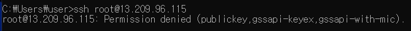 그리고 다시 root로 접속하려고 하면 Permission denied 에러가 나옵니다.