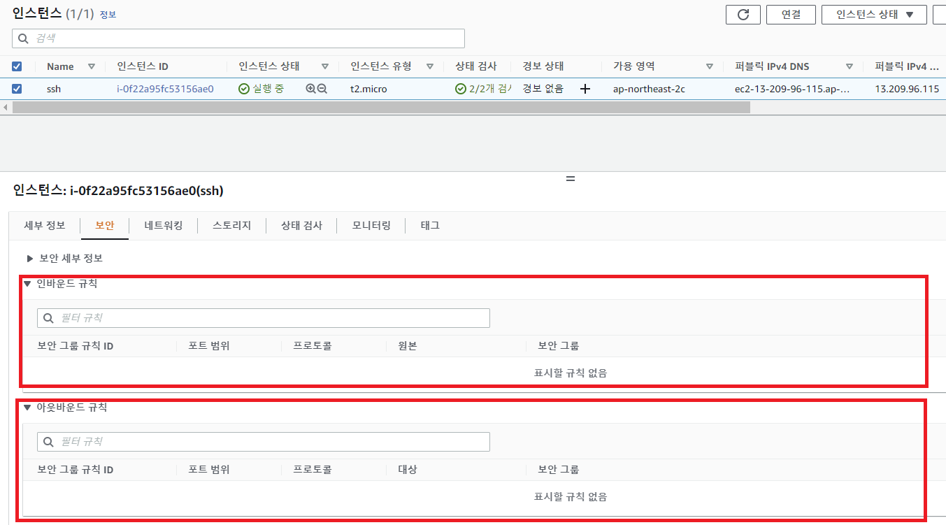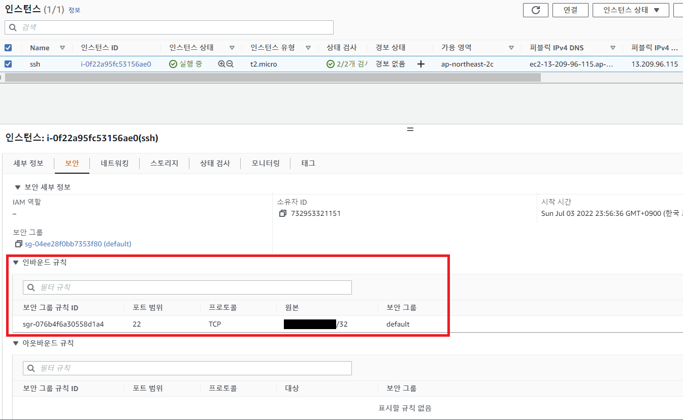 (ssh 접속만을 위해서는 아웃바운드는 필요 없습니다.)