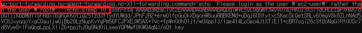 해당 파일에 접근해서 ssh-rsa 앞부분을 지워줍니다.