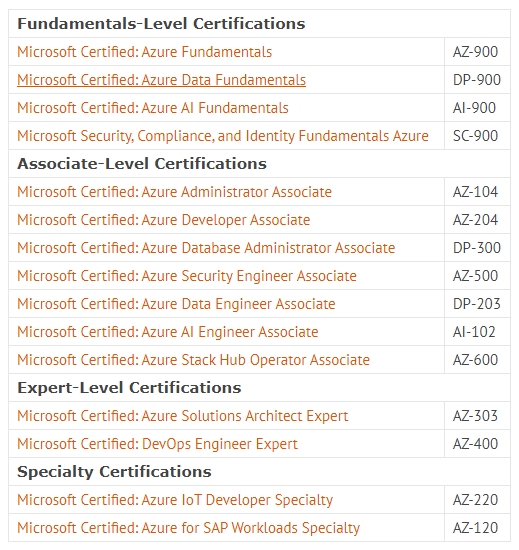 현재 Azure Certifications 공식 홈페이지에서도 역할 기반으로 어떤 과정을 인증 받으면 되는지 자세히 가이드 해주니 본인의 업무와 연관된 시험에 응시하시면 좋을 거 같습니다.