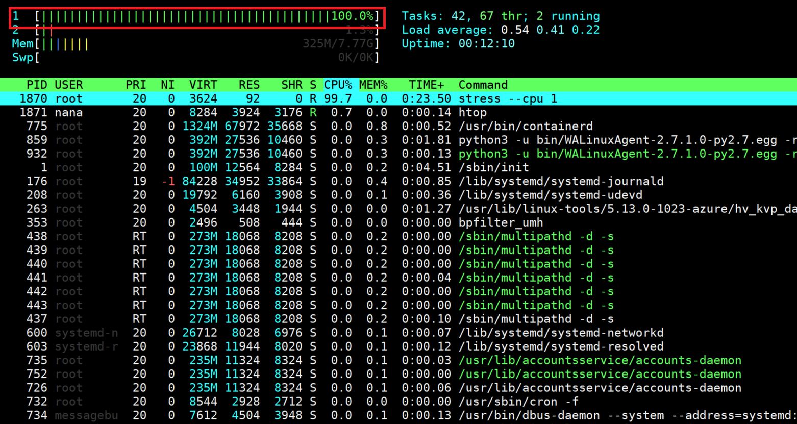 - CPU 1에 100% 부하를 적용
