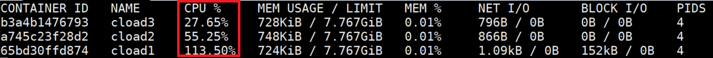docker run -c 512 --name cload3 -d stress:latest