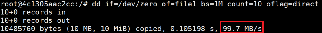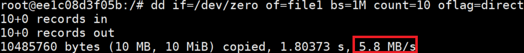 dd if=/dev/zero of=file1 bs=1M count=10 oflag=direct