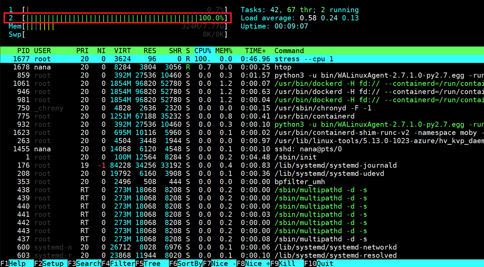 docker run -c 2048 --name cload1 -d stress:latest