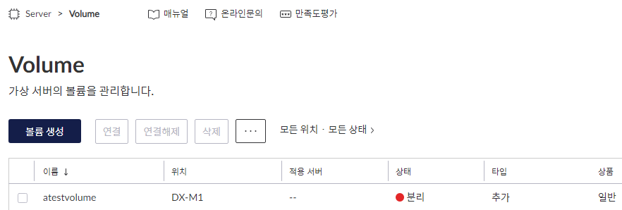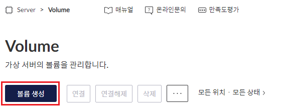 Server > Volume 에서 [볼륨 생성]을 클릭합니다.