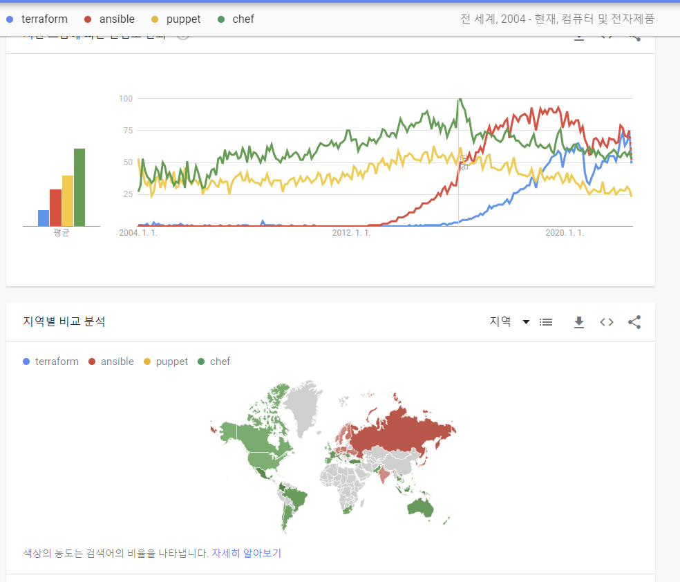 참고 : https://trends.google.co.kr/trends/explore?cat=5&date=all&q=terraform,ansible,puppet,chef