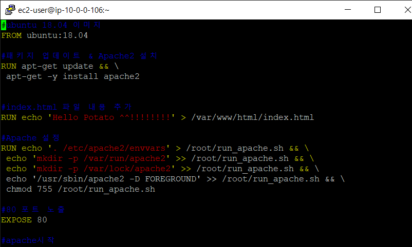 4.2 이미지화 시킬 Apache 웹 애플리케이션. index.html