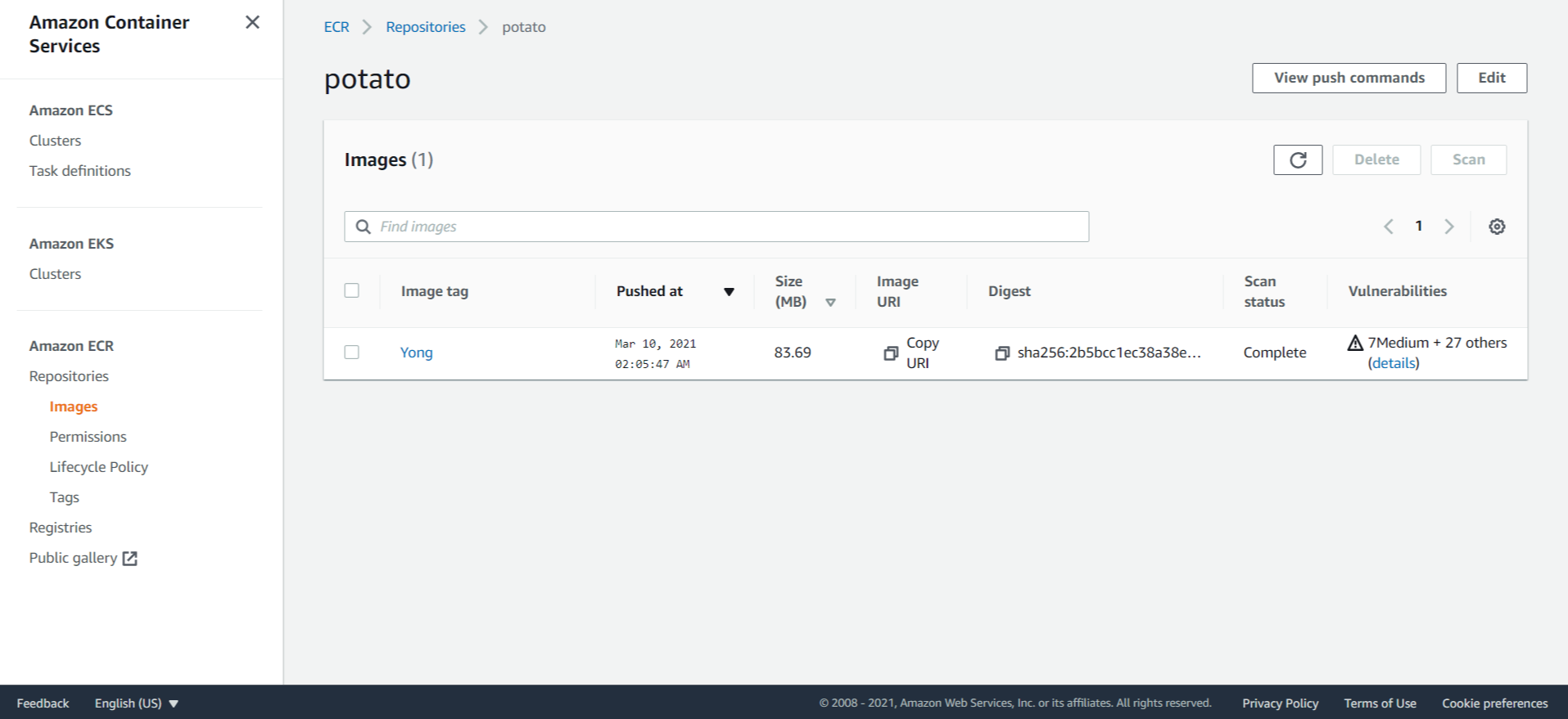 7. ECR에 레포지토리 이미지 Push