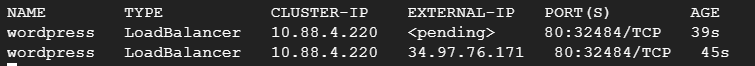kubectl get svc -l app=wordpress --watch