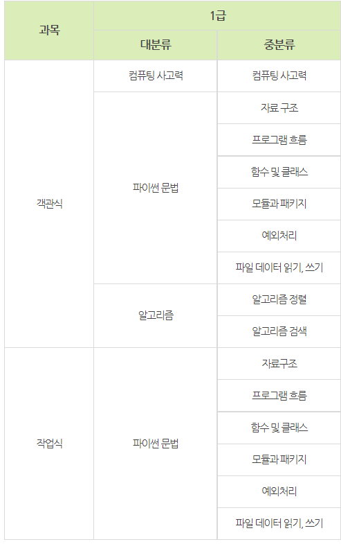 - 파이썬 마스터 1급: 파이썬 프로그램을 활용하여 주요 IT 서비스와 인프라 구축 등의 실제 직무에 활용될 수 있는 소프트웨어 개발