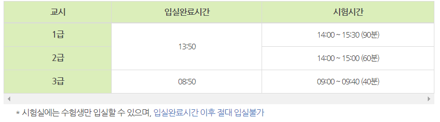 입실 및 시험시간