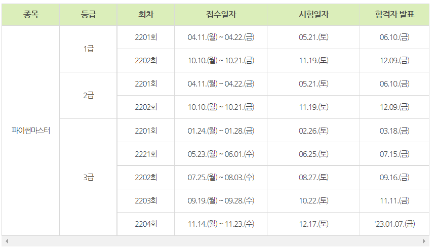 2022년도 시험 일정은 다음과 같습니다.
