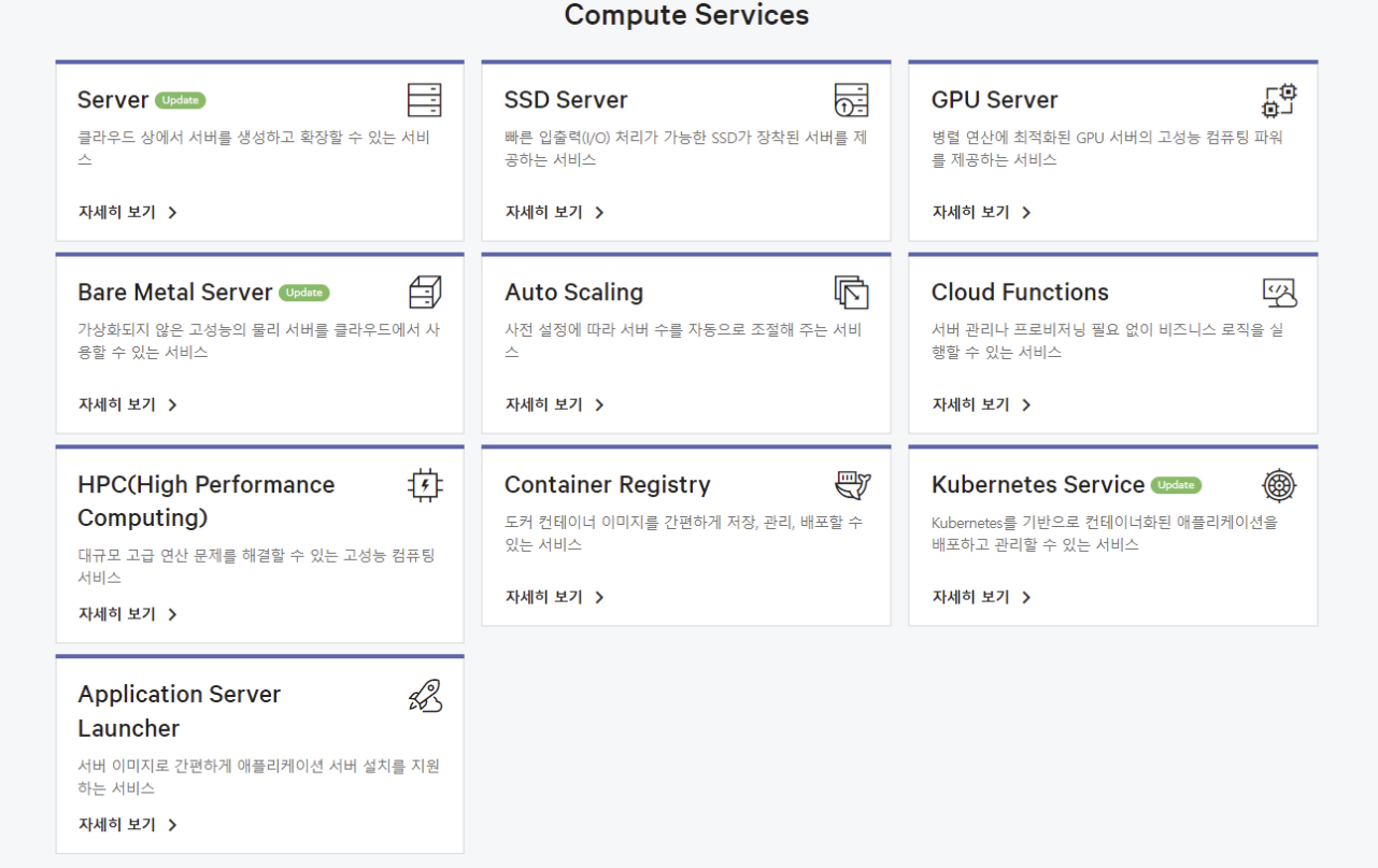 Naver Cloud Platform의 Compute 서비스는 기본적인 서버를 생성하고 관리하는 서비스입니다.