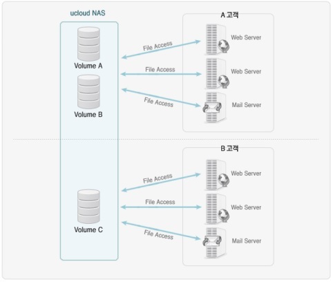 KT Cloud NAS -> 볼륨 생성 클릭 cloud NAS 서비스 구동 방식