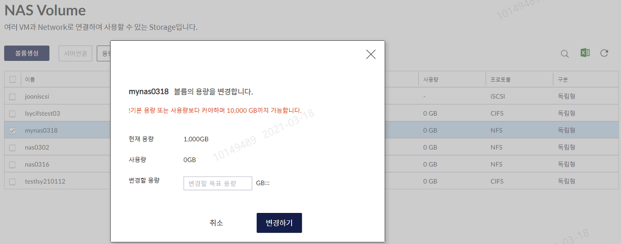 NAS 상품 신청 (D1플랫폼) - 볼륨생성