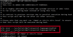 echo never > /sys/kernel/mm/transparent_hugepage/enabled