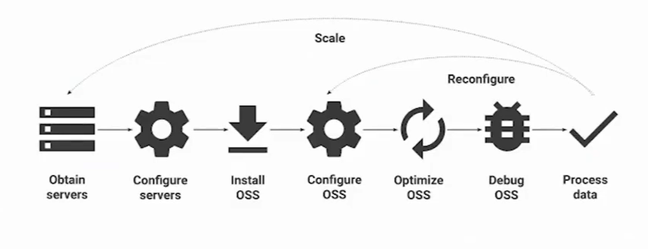 GCP에서 'Hadoop' 'Spark' 등과 같은 프로그램을 사용하고 싶으실 때, Dataproc 서비스 이용하시면 2분 이내에 cluster 생성이 가능하며 관리까지 해줍니다.