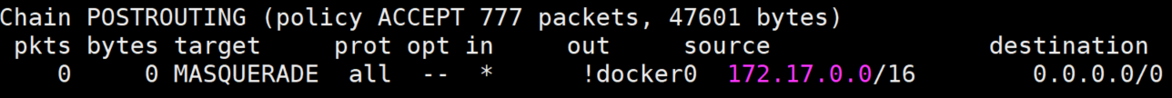 - iptables -t nat -L -n -v 통해 확인 가능