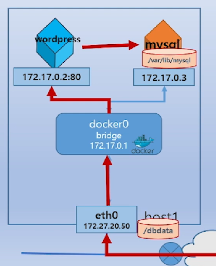 - 모든 container는 외부 통신을 docker0를 통해 진행