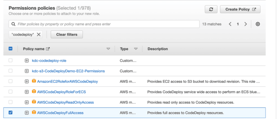 위처럼 저는 ‘AWSCodeDeployFullAccess’ , ‘AmazonS3FullAccess’ 정책을 지정해줬습니다.