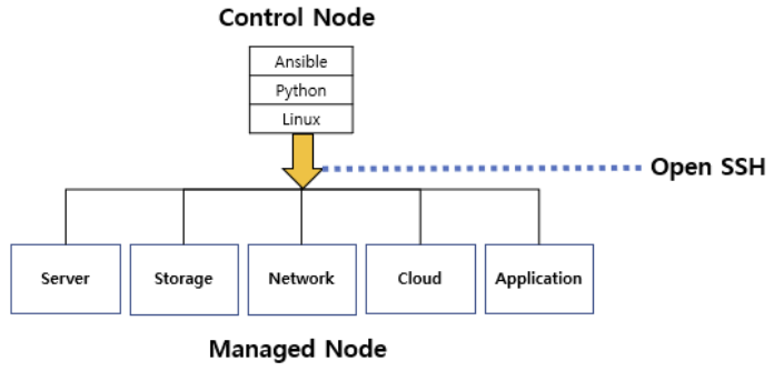 "하나의 제어 노드(Server)에서 여러 관리 노드(Client)를 관리하는 구조"