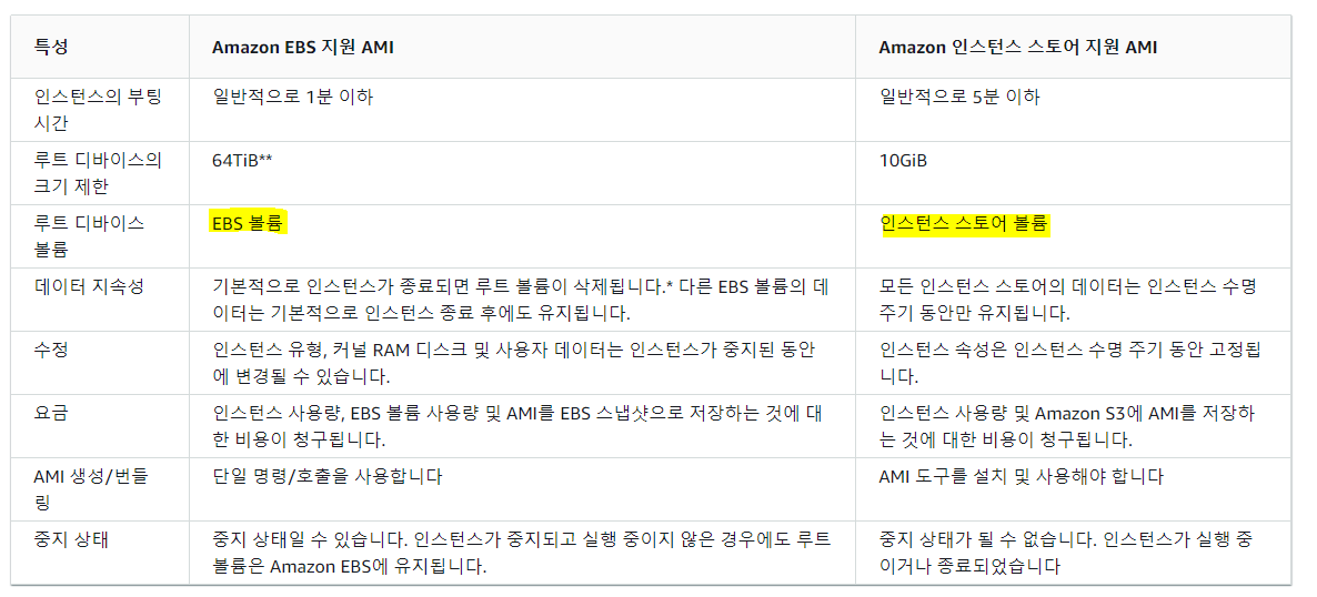 ⇒ EBS볼륨을 이용한 AMI 사용이 대부분이다