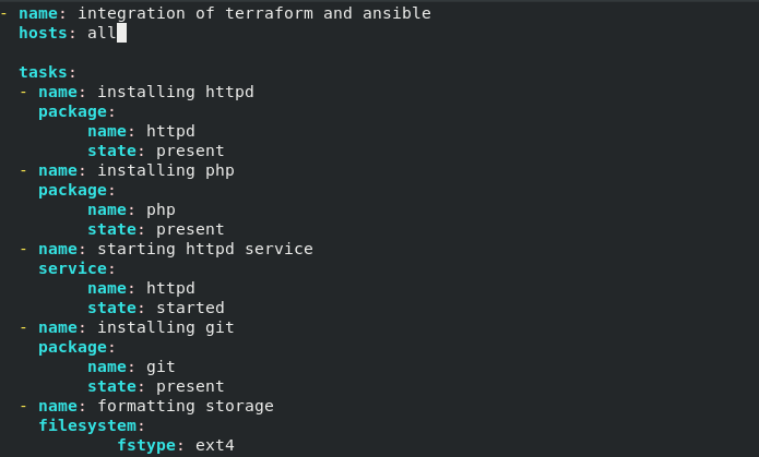 - Ansible을 사용하려면 terraform이 있는 로컬 시스템의 원격 제어 노드에서 ansible 플레이북을 실행해야 합니다. 이것은 원격 시스템에서 명령을 실행할 수 있게 해주는 terraform의 remote-exec 기능을 사용하여 생성할 수 있습니다.