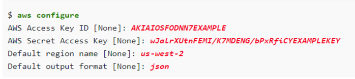 3. CLI다운 후 cmd 나 mobaXterm 같은 툴로 " aws configure " 후 엔터를 한 줄씩 치면 위 이미지와 같이 나온다.