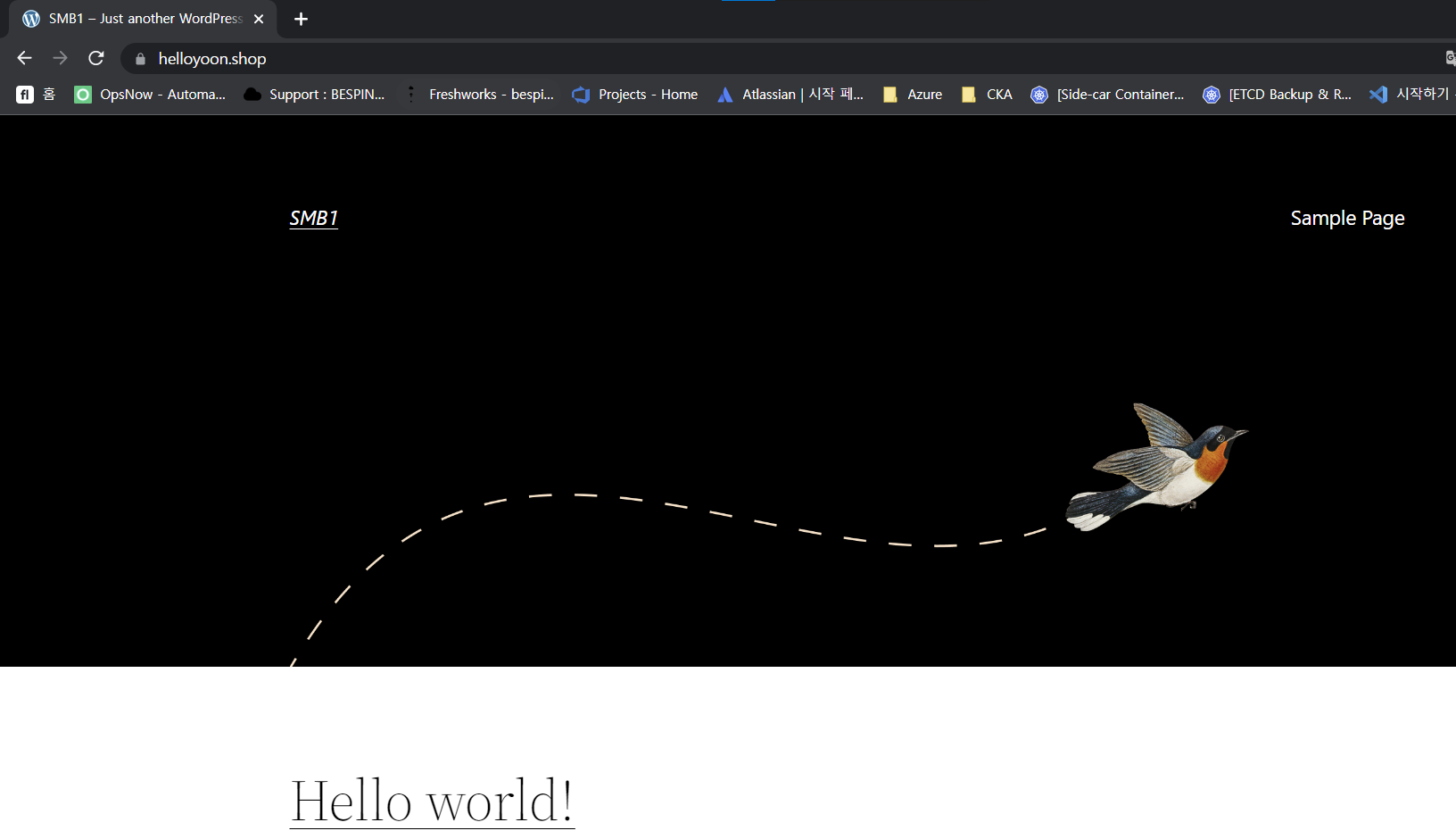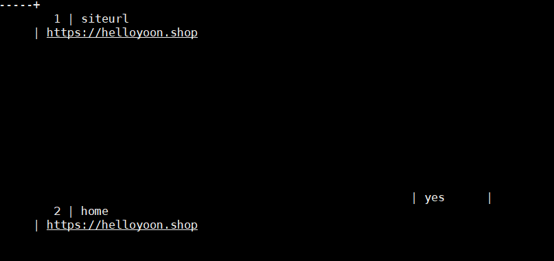 - wordpress database의 wp-options table에 저장된 home, siteurl이 동일한 값으로 적용