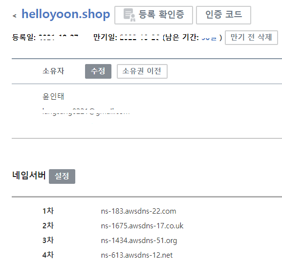 도메인을 만든 사이트에 네임서버 등록