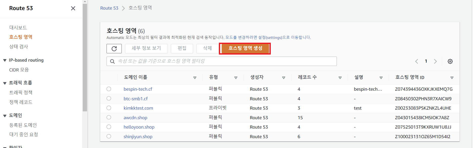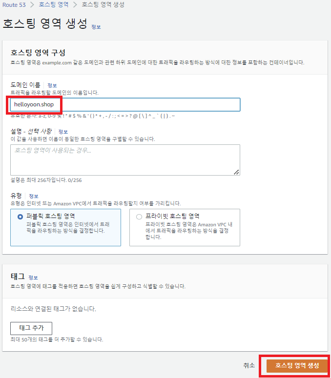 Route53에서 도메인 호스팅 영역 생성
