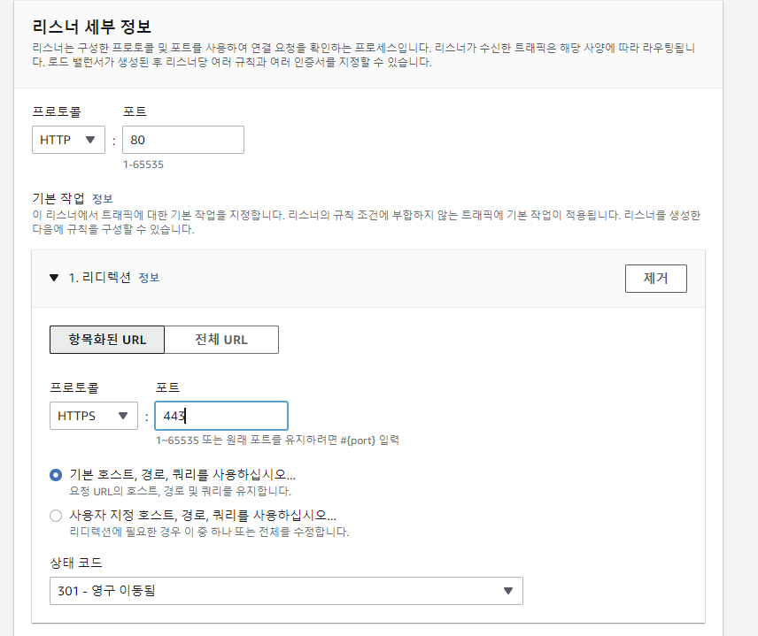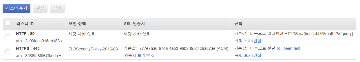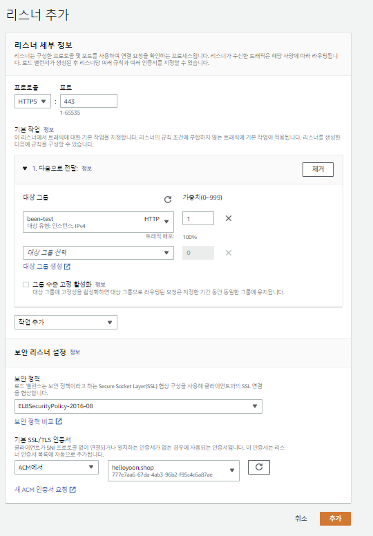 - https : 대상그룹으로 직접전달, 인증서 적용