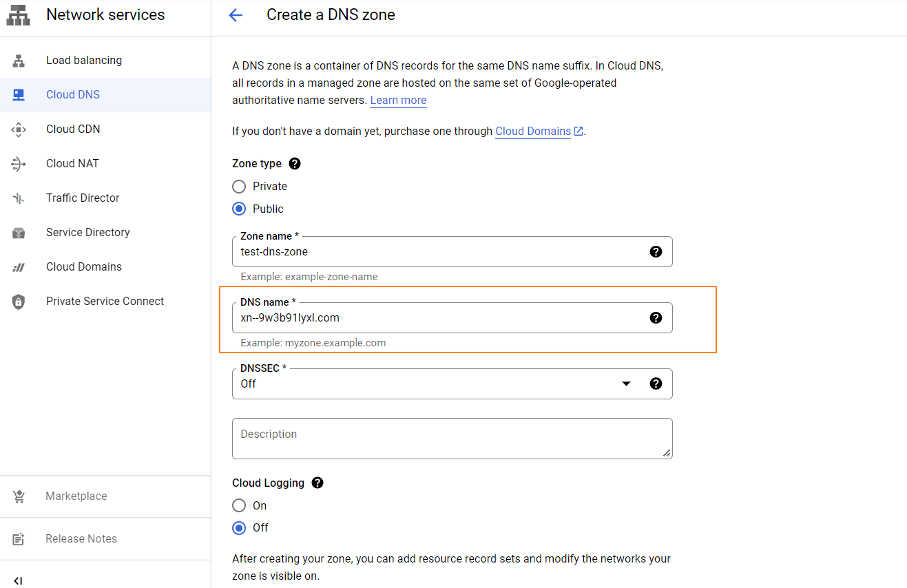 이제 영문으로 변환된 도메인을 Cloud DNS 상에 등록하여 사용하면 됩니다.