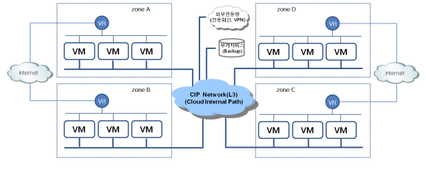 Internet Traffic이 처리되는 VR을 경유하지 않는 별도의 내부 L3 Network으로, VM-toVM,VM-to-외부망(전용회선, VPN), VM-to-Service(백업 등)에 활용 가능합니다.