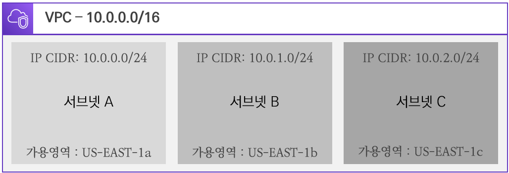 추가적으로 서브넷의 IP 대역은 VPC의 IP 대역인 10.0.0.0/16 에 속해야하며, 서브넷은 1개의 가용 영역에 종속되어야 합니다.