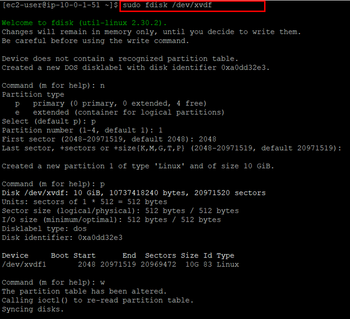 2. fdisk 명령어를 통해 디스크 파티셔닝 작업 진행