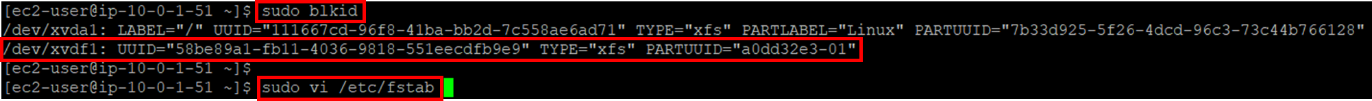 5-1. blkid 명령어를 통해 볼륨의 UUID 확인