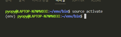 다음과 같이 activate를 실행시키고 맨앞에 환경의 이름이 뜬다면 가상환경이 설정된 것입니다.