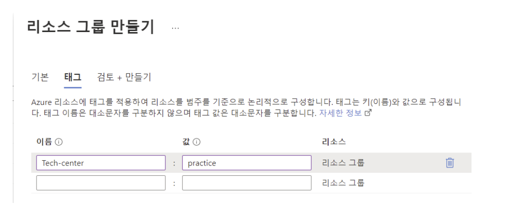 - 관리가 쉽도록 리소스 그룹에 태그를 달아줍니다.