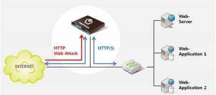 | 구성 형태 | 네트워크 경계 부분에 위치 | 논리적으로 웹서버 앞(Inline/Proxy 모드에 따른 물리적인 구성은 달라짐) |